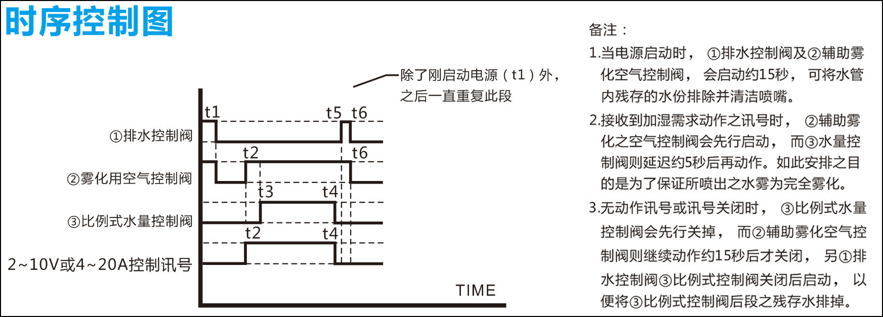 而ON-OFF控制,是不論水量需求大小,均使用全量的壓縮空氣。不但霧化效果不佳,也浪費很多的壓縮空氣,而且濕度亦較不易穩(wěn)定控制。因為大部份“時空環(huán)境”實際需要的加濕量常小于設(shè)計需求量,而霧化最佳條件需要二者保持1.0~1.5KG/CM²之壓差。當(dāng)離開此一操作點,結(jié)果不是霧化效果不佳,就是浪費空氣能源,效率不高。